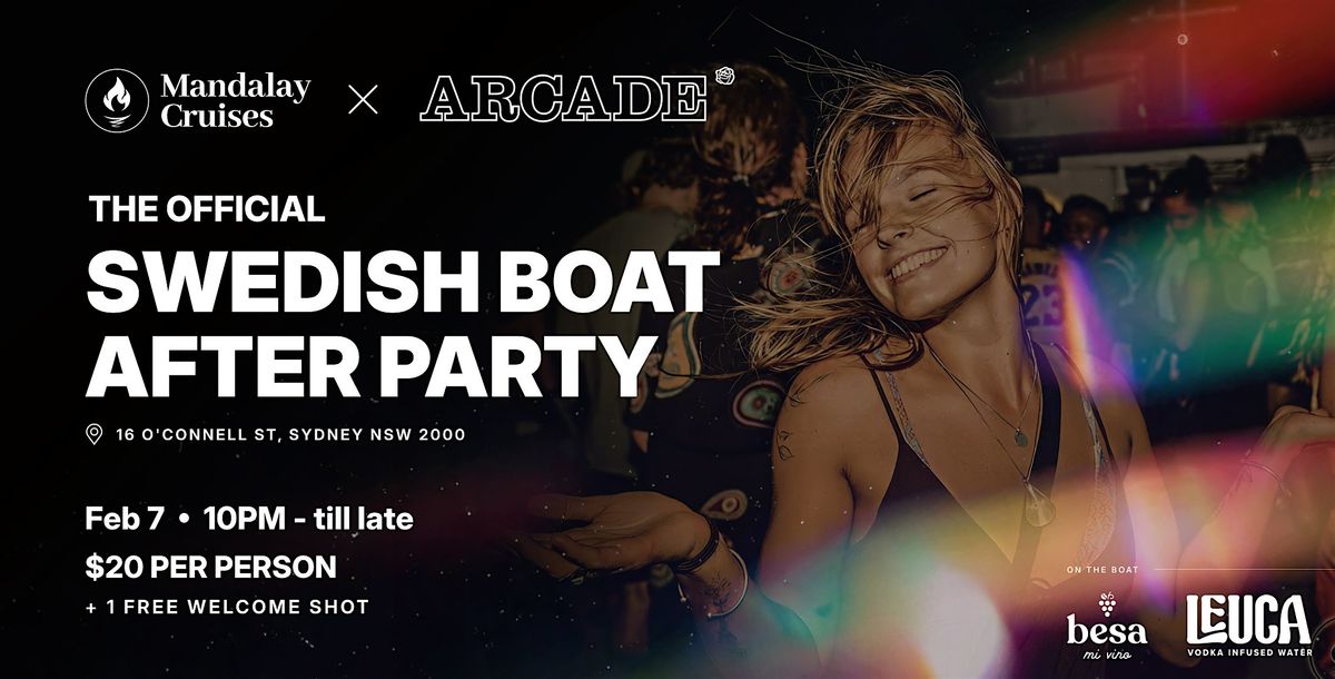 Join us for the official after party following the Swedish Boat Sunset Cruise hosted by Tove Dahlberg — taking over Arcade Bar and Club from 10pm till late.