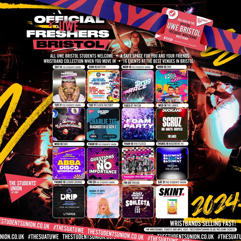 The OFFICIAL UWE Bristol Freshers' Week Wristband 2024