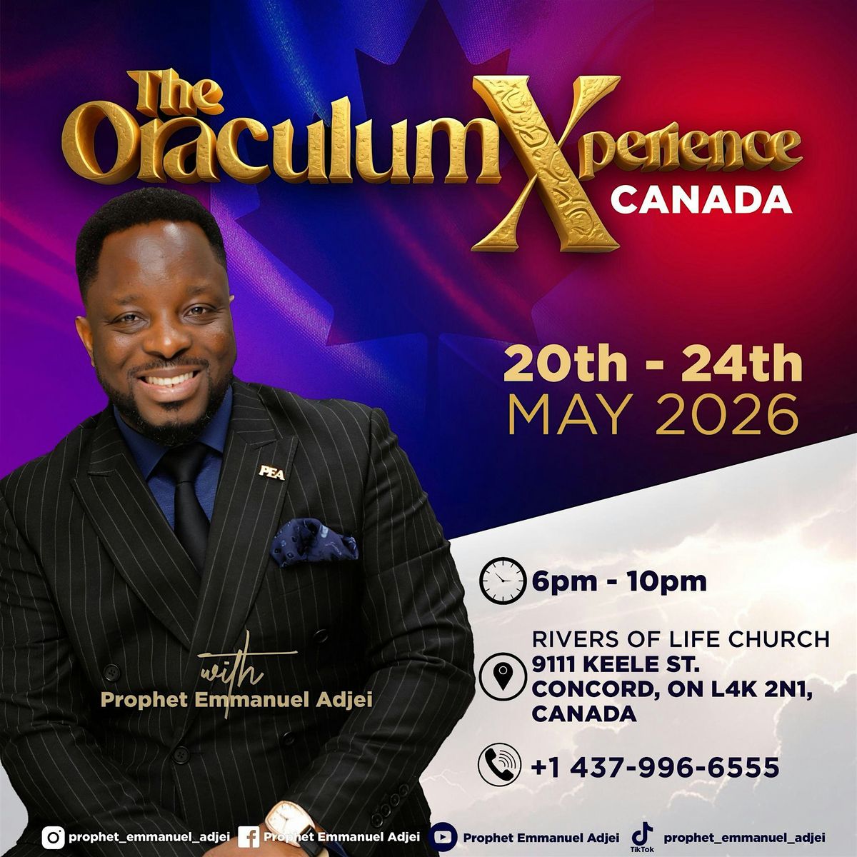 CONTACT / ORGANIZER INFO Phone: +1 437-996-6555 Instagram: @prophet_emmanuel_adjei Facebook: Prophet Emmanuel Adjei YouTube: Prophet Emmanuel Adjei TikTok: @prophet_emmanuel_adjei