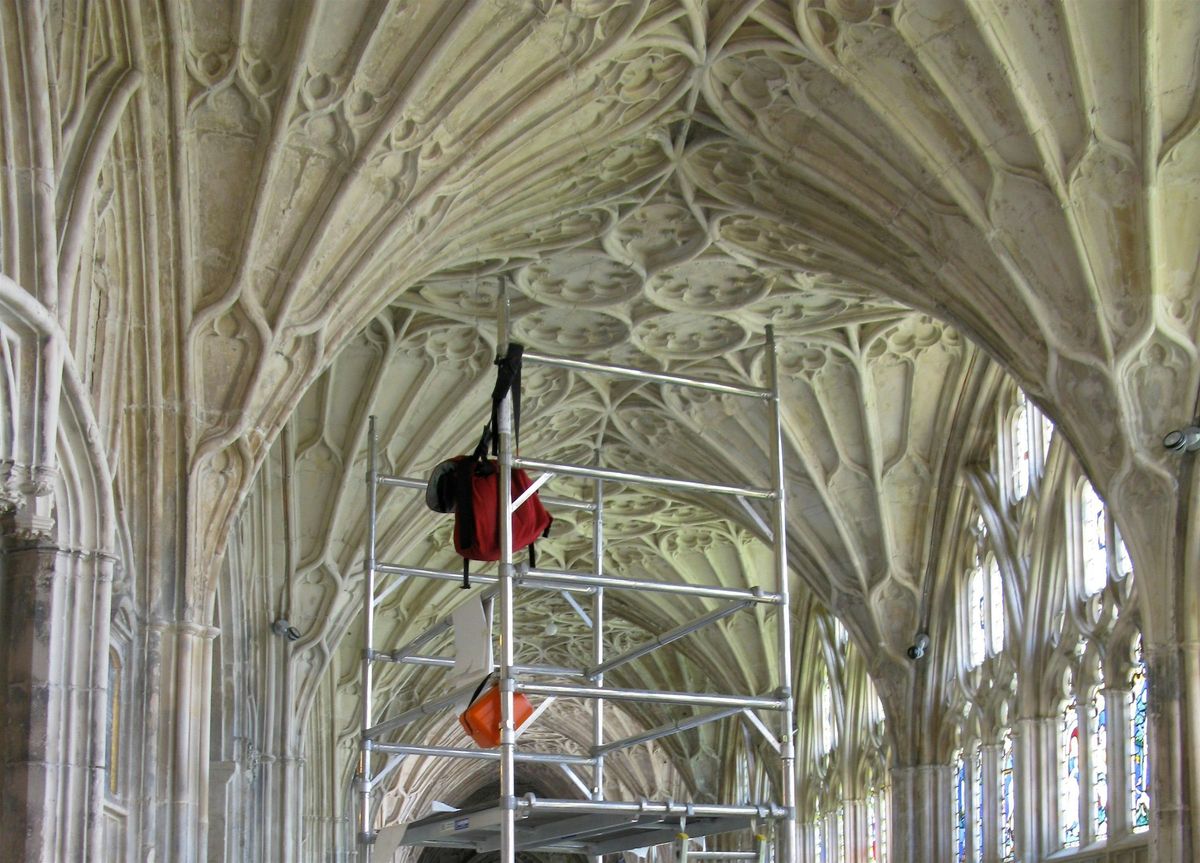 The Fan Vault is a peculiar English invention found mostly in Chantry Chapels, South Porches and the occasional grand church. Earliest examples date from 1351. It is a Gothic style form of vault in which the ribs are all of the same curve and spaced equidistantly, resembling a fan. Excellent examples can be found in Gloucester Cathedral, as well as Bath and Tewkesbury Abbey with King’s College Chapel in Cambridge boasting the largest fan vault in the world.
