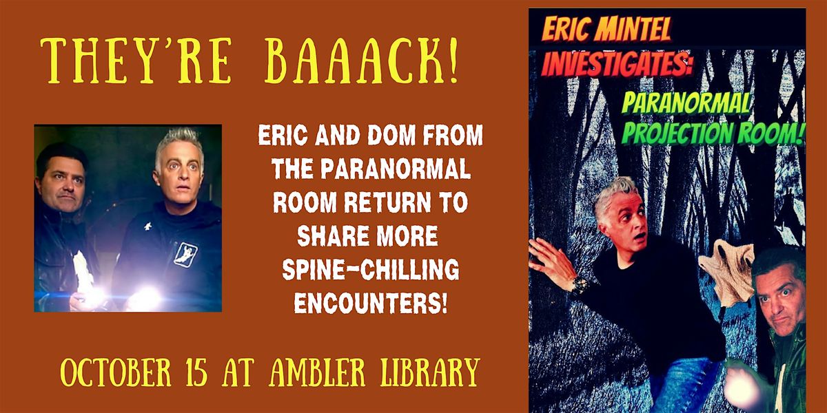 Acclaimed jazz musician and paranormal investigator, Eric Mintel and psychic Dominic Sattele from Eric Mintel Investigates, return to the Ambler Library on Tuesday, October 15 at 6:30 PM with an all-new program!