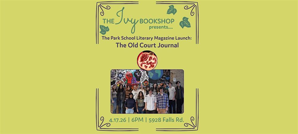 The Park School’s high school literary magazine, The Old Court Journal, is delighted to host its second-ever reading at the Ivy Bookshop! In addition to reading their favorite works by published authors, the magazine’s student staff, and other passionate students and teachers will be reading directly from their original submissions to the magazine. After school or work, stop by the Ivy’s downstairs patio on April 17 at 6 p.m, for an evening of fresh, budding literary creativity. There will be music, refreshments, and light appetizers.