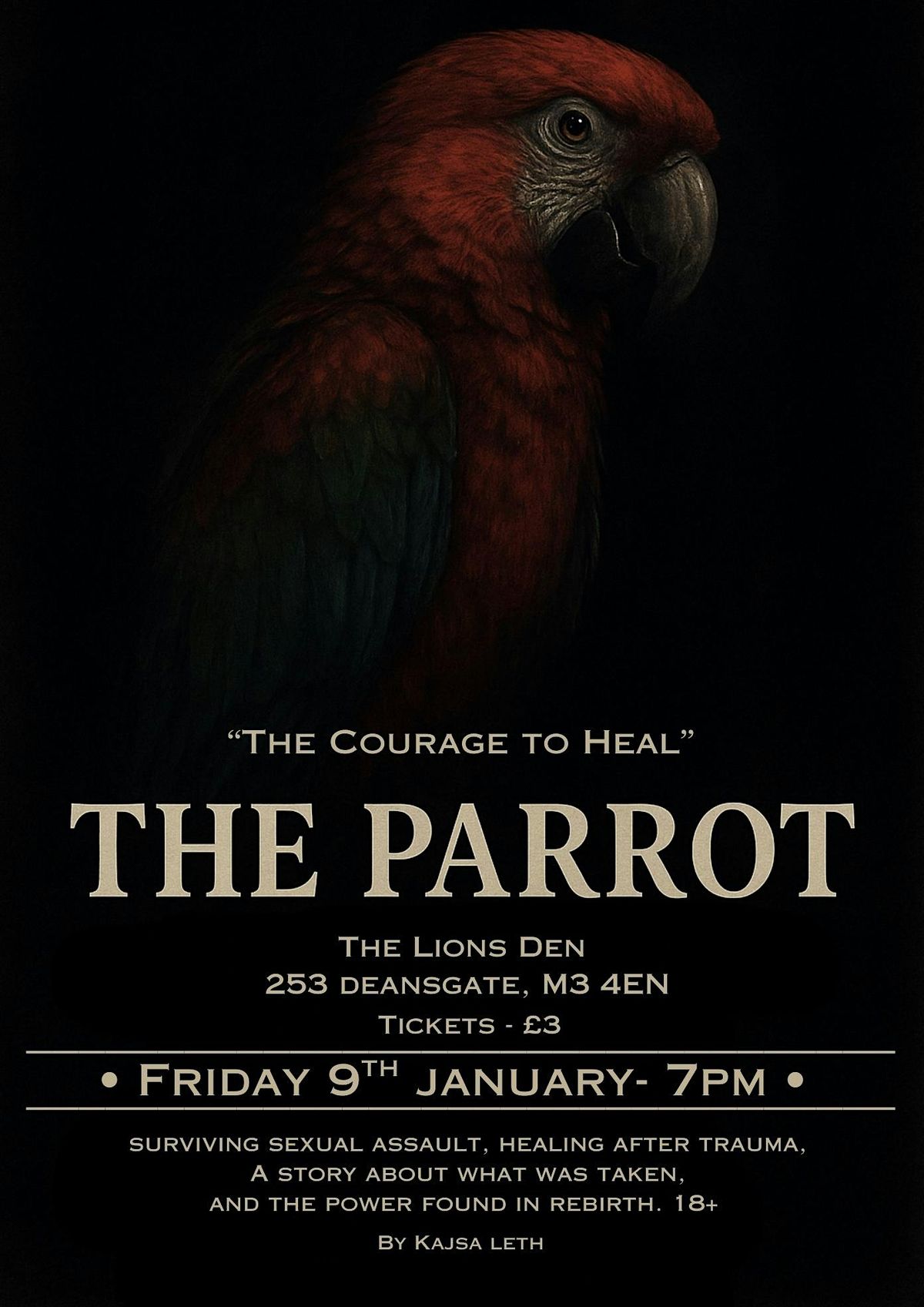 “The Parrot” is a survivor-led talk about sexual assault, trauma, and the process of rebuilding your voice and sense of self. It is an event thatll discuss the silence that followed, and the long, complicated journey toward loving a new identity. This event creates a safe, reflective space for anyone who wants to understand survival, trauma, healing, growth, and is open to spreading awareness.