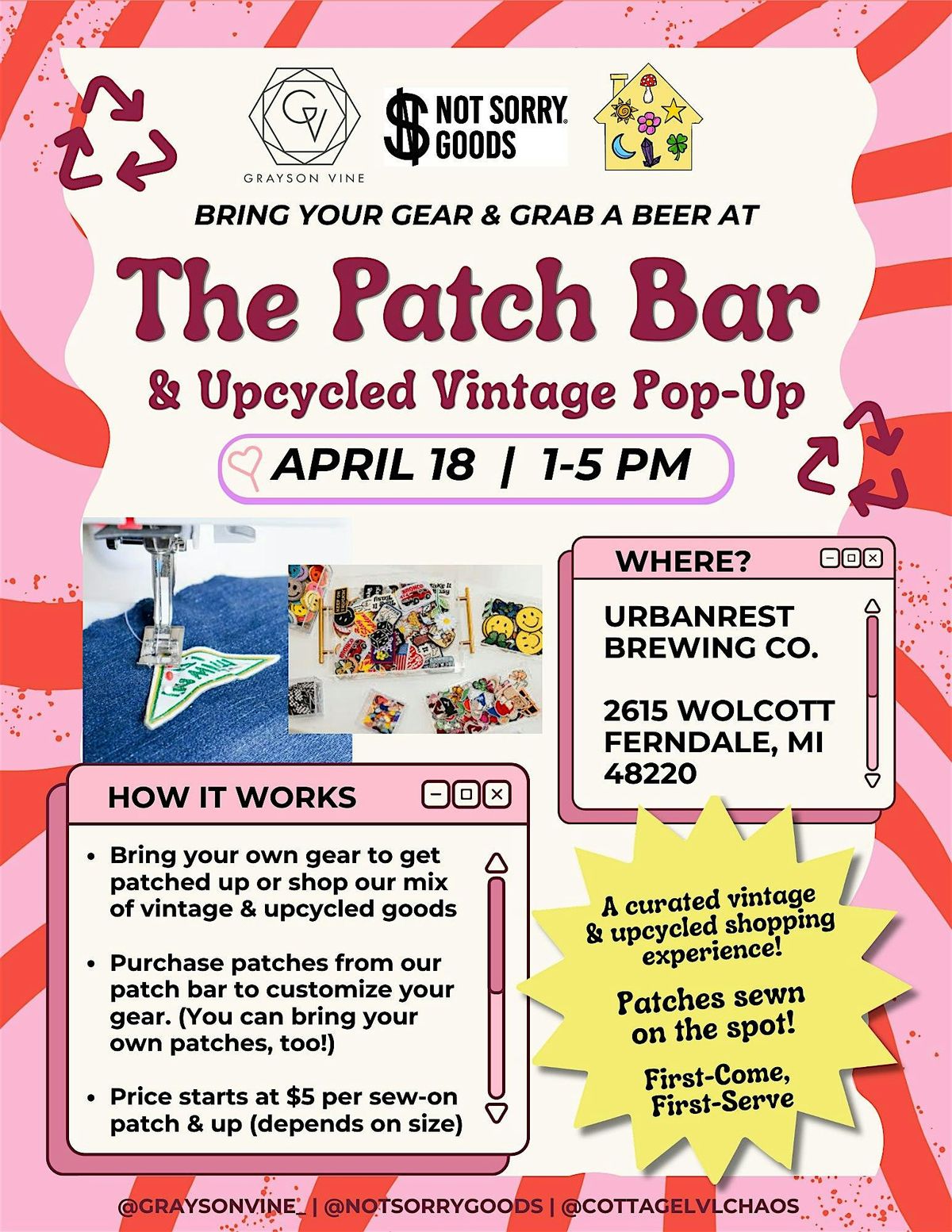Join us for The Patch Bar & Upcycled Vintage Pop-Up Shop! We will be poppin' up inside Urbanrest Brewing on April 18!