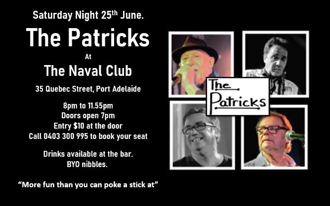 The Patricks at The Naval Club. Entry $10