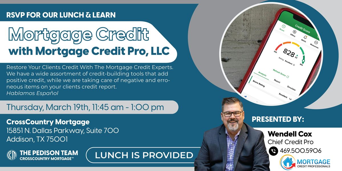 Wendell Cox of Mortgage Credit Pro, LLC will be presenting for us and discussing the in's and out's of Credit and it's specific relation the mortgage loans. Wendell has years of experience as a Mortgage Loan Officer, and is now using those keen insights to assist borrowers to get their scores into the ideal range for their next home purchase.