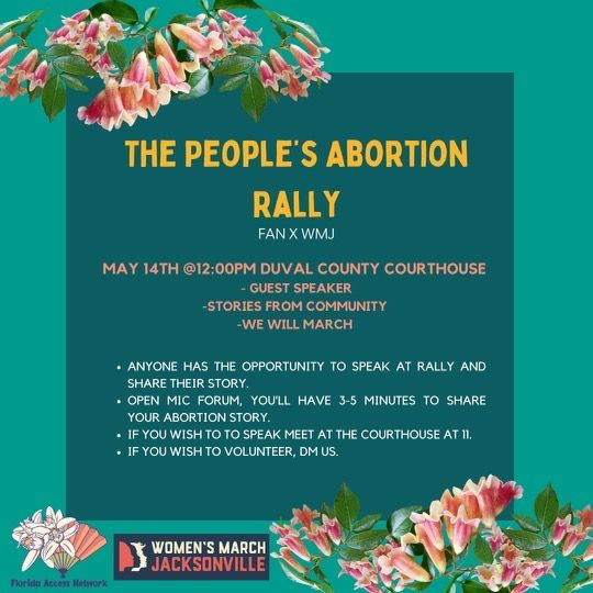 Florida Access Network and Women's March Jacksonville are coming together to host an event for the community to share their abortion stories, we will also have guest speakers, and we will march!!