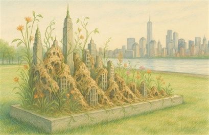 The work reimagines the New York skyline as a sculptural model built from biodegradable plastic. As these structures break down, embedded seeds begin to grow, allowing growth and collapse to unfold in parallel. Reflecting a landscape where "the toxic leftovers of Industrial America" once defined the shore, Liu’s work uses material innovation to compress urban decay into a tangible experience of impermanence and renewal.
