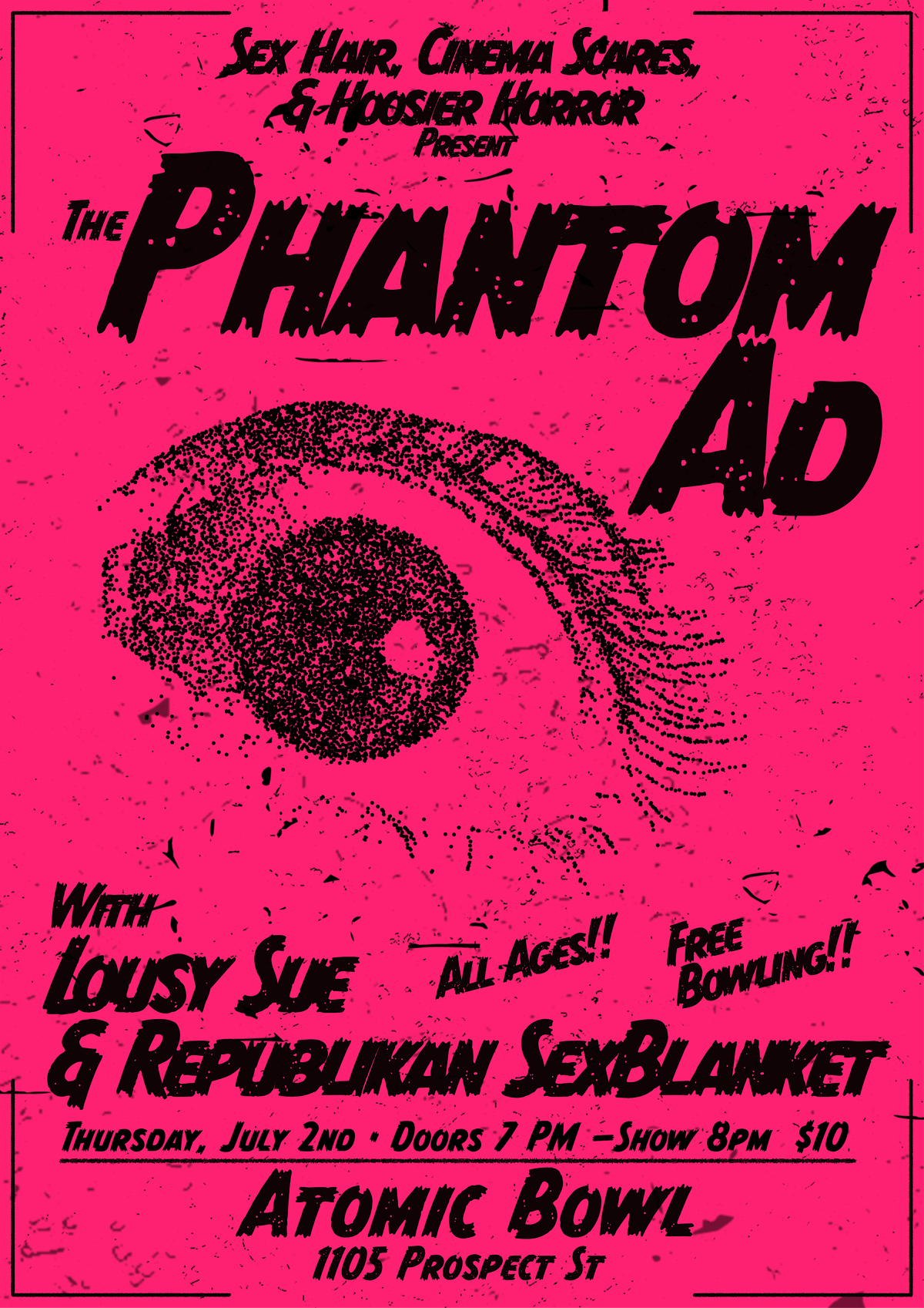 Sex Hair,Cinema Scares and Hoosier Horror Presents The Phantom Ad,Lousy Sue and Republikan SexBlanket