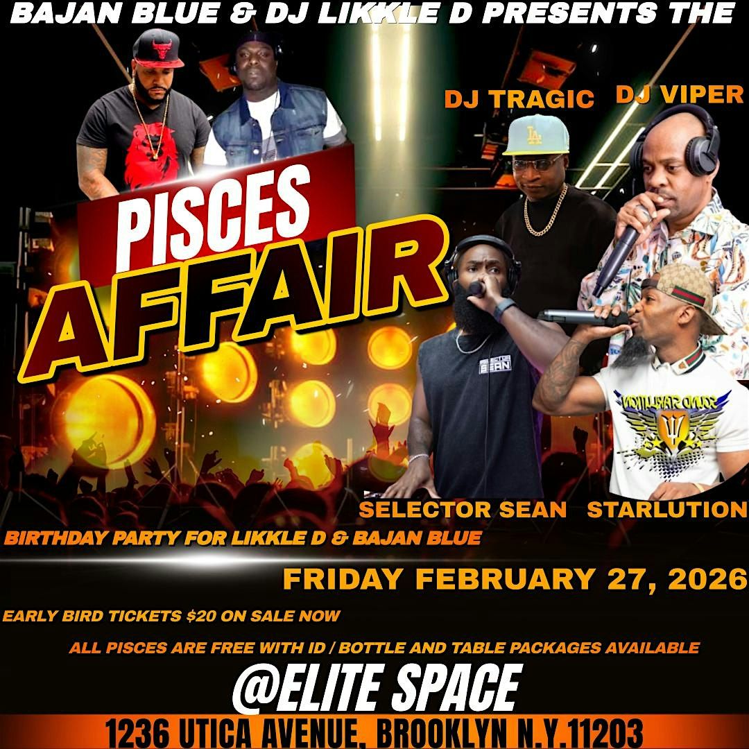 THE ULTIMATE PISCES AFFAIR COMES TO FUN CITY BROOKLYN. A BIRTHDAY CELEBRATION FOR DJ LIKKLE D & BAJAN BLUE. ALL PISCES ARE FREE WITH VALID ID. COME ON DOWN AND EXPERIENCE A NIGHT TO REMEMBER.