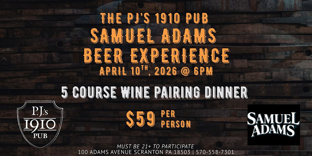 Enjoy a curated five-course beer dinner experience at PJ's 1910 Pub, located inside the Hilton Scranton & Conference Center. This special menu highlights thoughtfully prepared dishes paired with craft selections from Samuel Adams, designed to showcase how beer can complement and elevate each course of a meal.