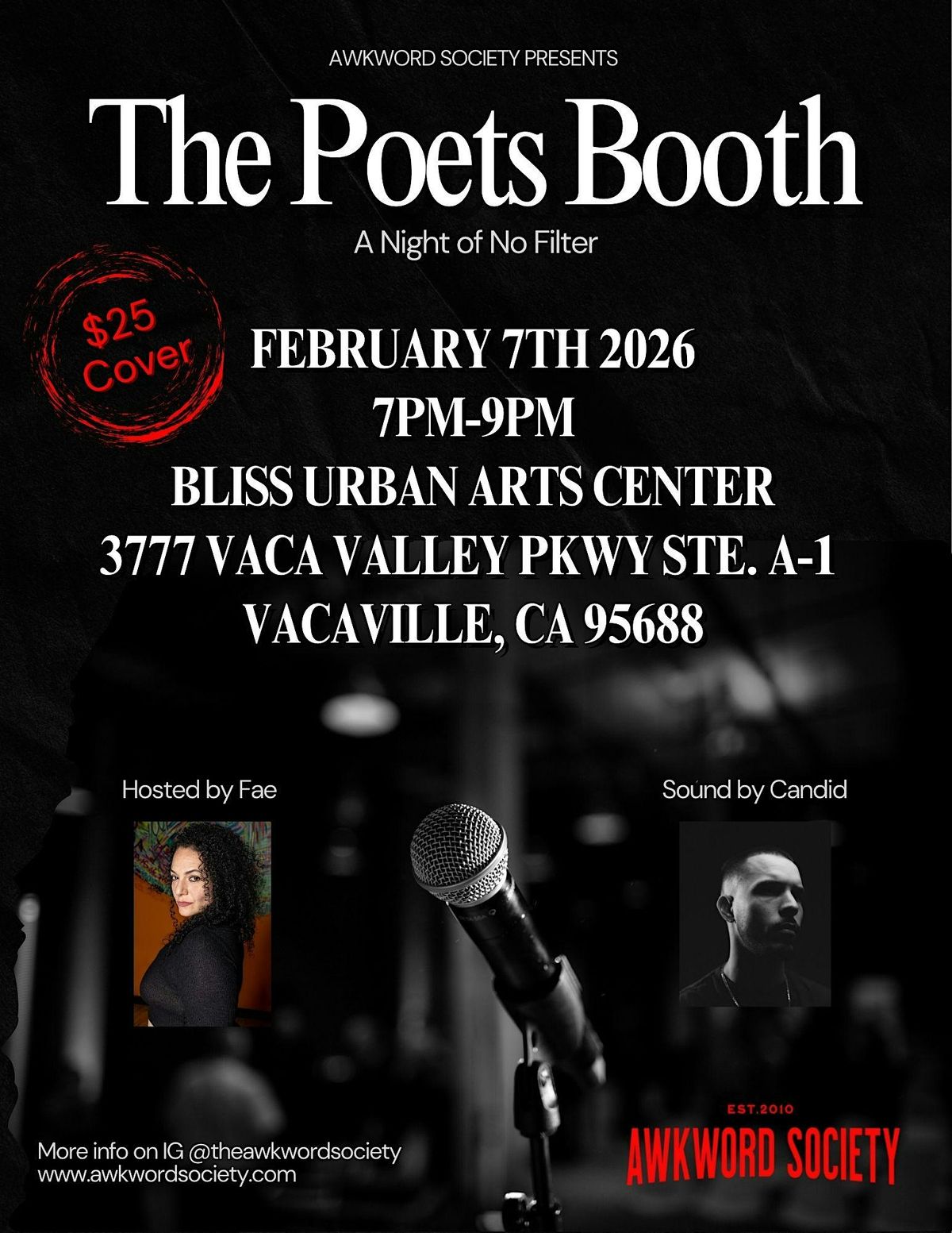 The Poets Booth: A Night of No Filter is an intimate spoken word experience where raw truth takes center stage. Curated by Awkword Society