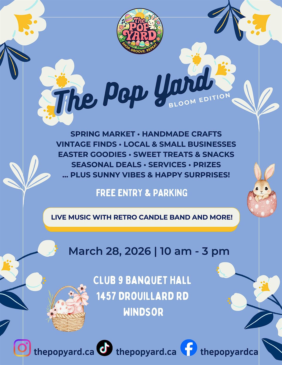 The Pop Yard is back with the Bloom Edition on March 28th, from 10 AM to 3 PM at Club 9 Banquet Hall in Windsor.