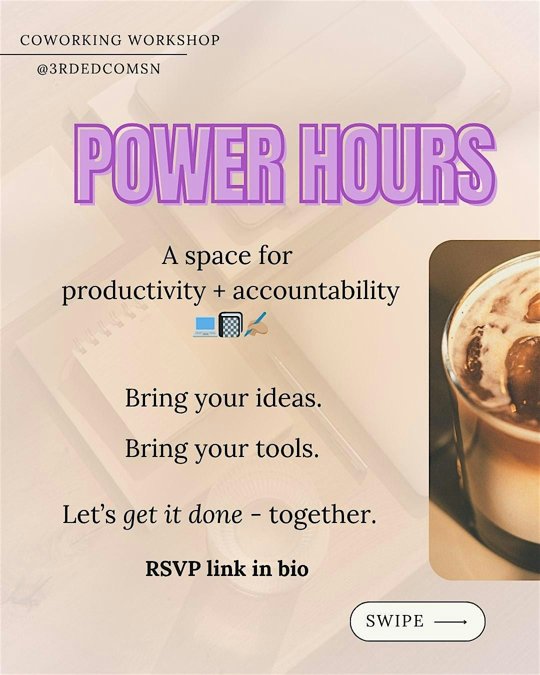 Power Hours is a faith-based coworking session dedicated to pursuing purpose through accountability and productivity. Our time together will be a focused space designed to help you actually get things done! πͺπΎ