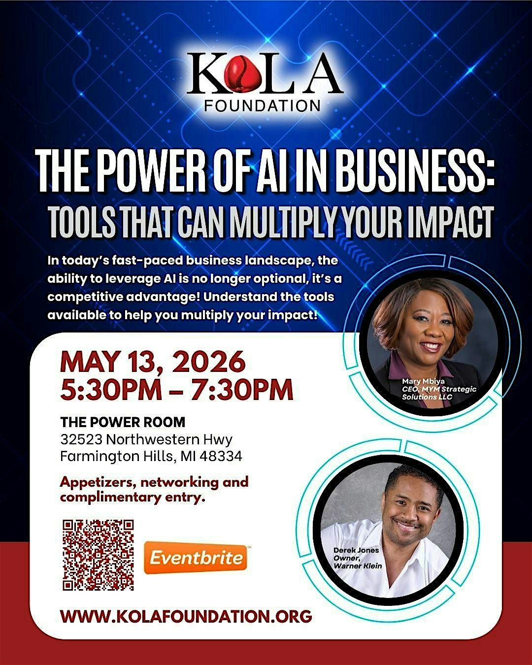 Join the Kola Foundation for an engaging and informative session designed to introduce entrepreneurs, professionals, and community leaders to practical AI tools that can help streamline operations, increase efficiency, and expand impact.