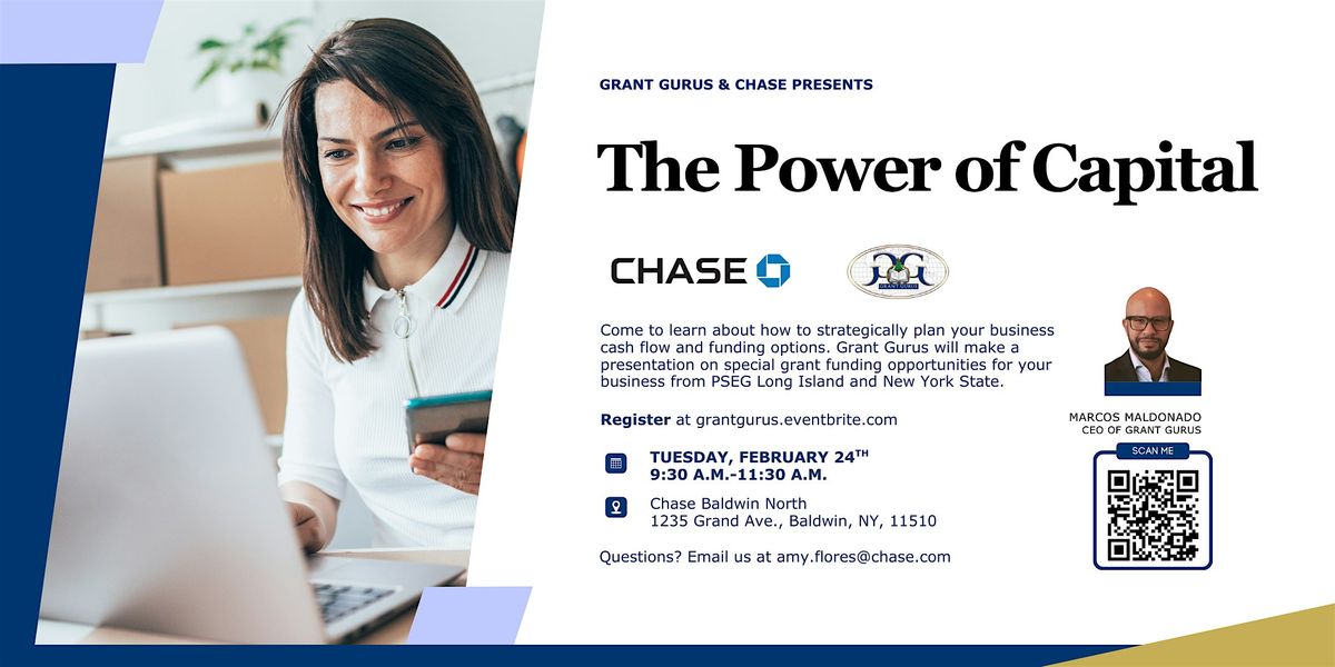 Representatives from Chase Bank will provide an informative discussion on the Power of Capital, providing tips and insights on how you can leverage your business assets to foster growth as you plan your pathway forward to a more successful business.