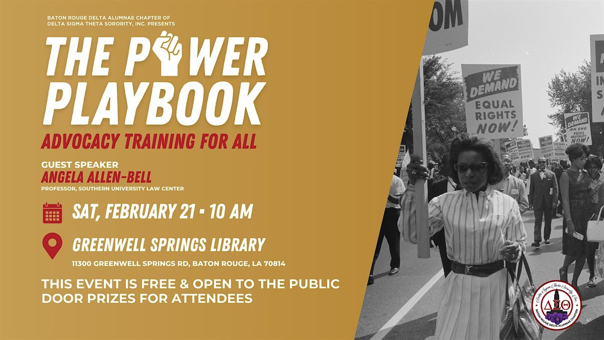 The Power Playbook: An Advocacy Training for All is a community-centered workshop hosted by the Baton Rouge Delta Alumnae Chapter of Delta Sigma Theta Sorority, Incorporated.