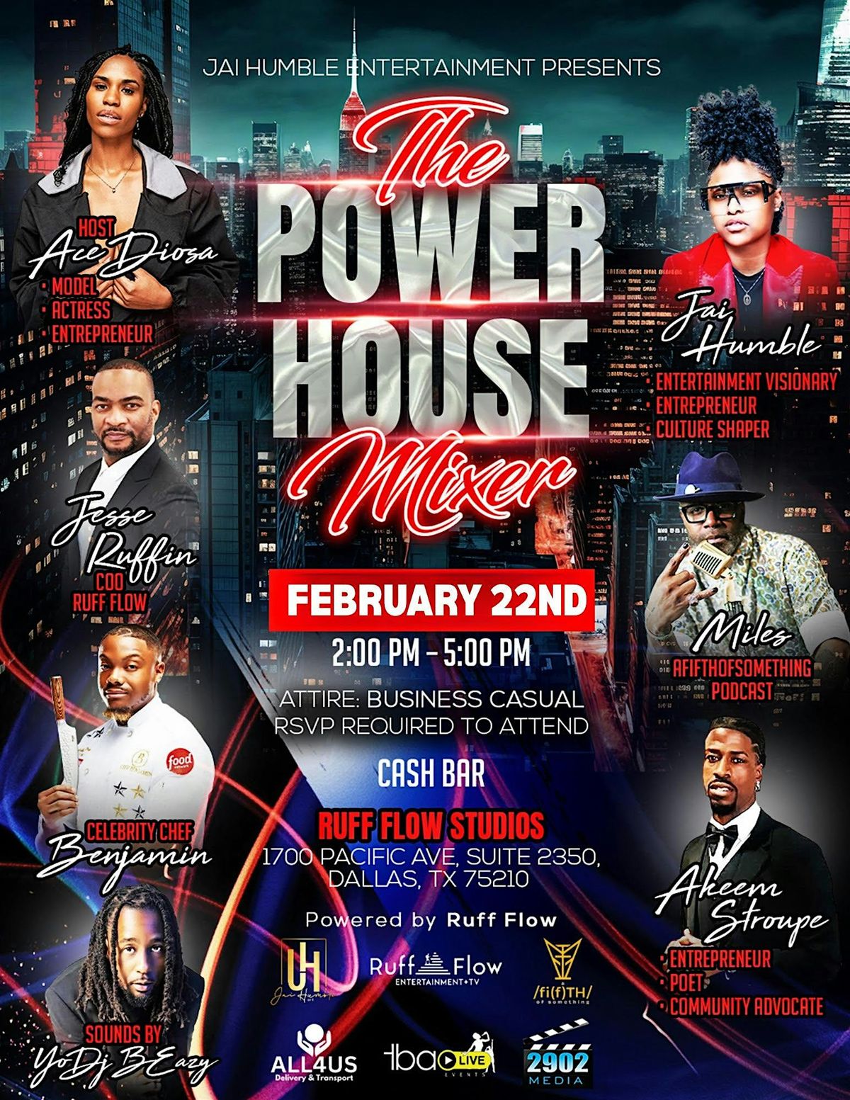 Ruff Flow: The Power Mixer, presented by Jai Humble Entertainment and powered by Ruff Flow, is a dynamic networking event designed for creatives, entrepreneurs, and emerging talent. Taking place at Ruff Flow Studios on January 25th, the mixer offers attendees a chance to connect with industry leaders, explore collaboration opportunities, and learn how Ruff Flow serves as a hub for growth. The event features a panel discussion with speakers including Miles, Ace, Chef Benjamin, Akeem, Jai Humble, and Mr. Jesse Ruffin, followed by audience Q&A, power pitches, giveaways, and a casting call launch for acting and modeling. Guests will enjoy curated finger foods, wine, and refreshments while touring the studio space. This mixer emphasizes brand building, collaboration, and professional development in a vibrant, interactive setting.