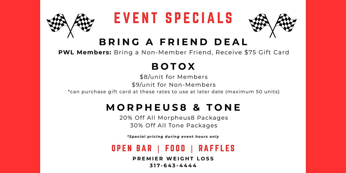 Step into an exclusive evening with Premier Weight Loss, where luxury meets transformation. This high-end event features an open bar, tasty bites, and access to unbeatable, one-night-only offers—including half off our aesthetics membership. Guests will also have the chance to win raffle prizes valued at $500, with a grand prize valued at $6,000. Discover the latest in weight loss, wellness, and aesthetics—all in one unforgettable night.