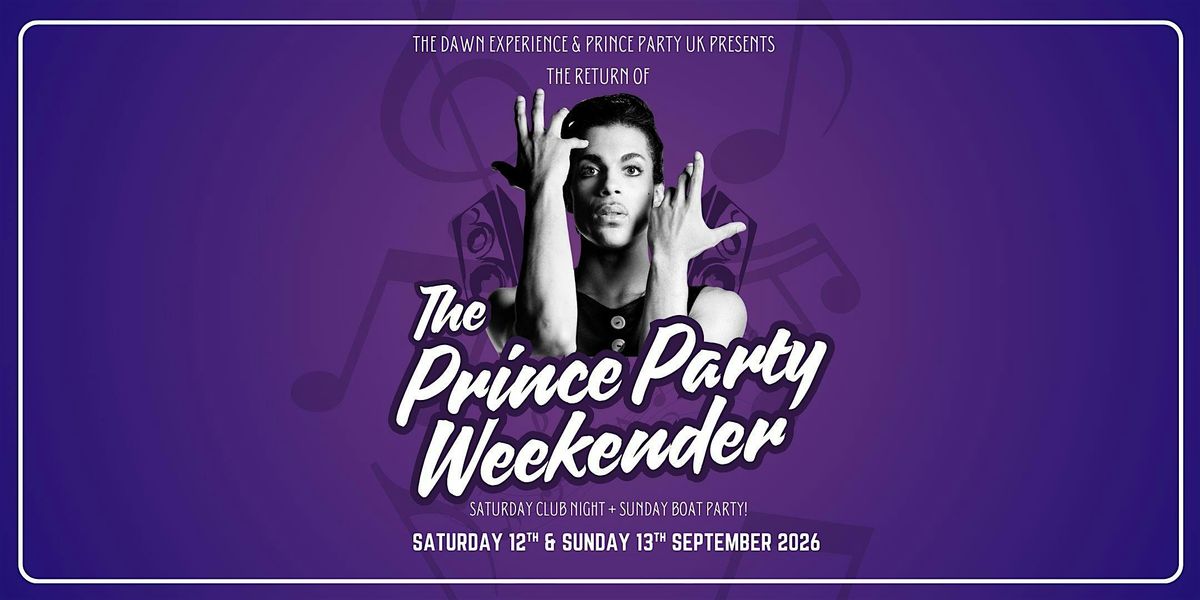 Prince Party Weekender 2026 – 12–13 Sept, London. Club Night & Boat Party Club Night 7pm - 1am / Boat Party 1pm- 6pm (from Temple Pier)