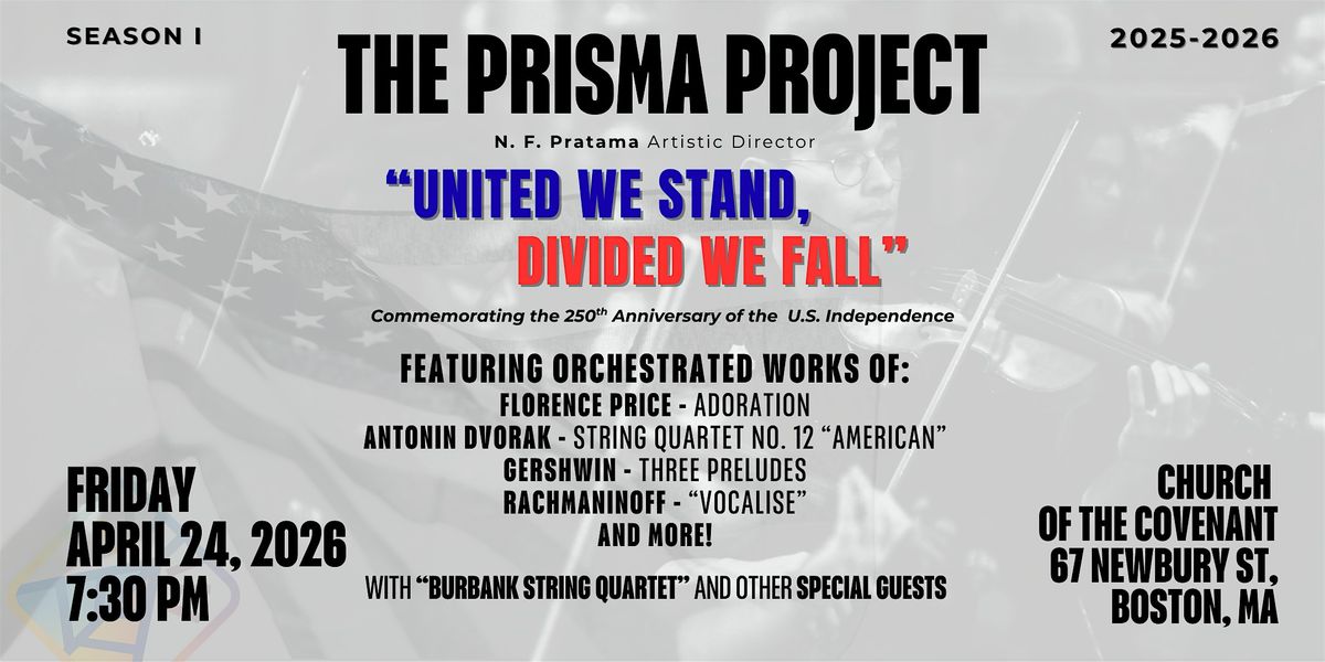 The PRISMA Project is back—and we’re thrilled to invite you to our spring concert, “United We Stand, Divided We Fall.” Join us for an evening of reimagined classics, bold orchestration, and collaborative artistry.