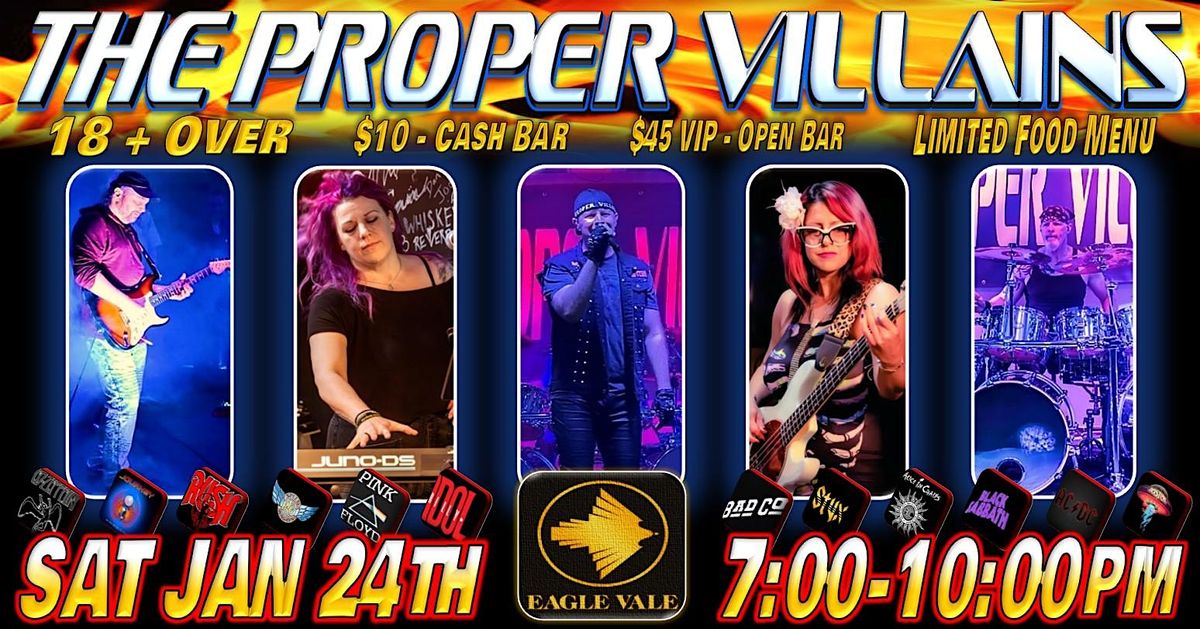 The Proper Villains are a cover band out of Rochester NY covering Rush, Journey, Zeppelin, REO Speedwagon, Styx, Boston, Pink Floyd, Billy Idol, Bad Company, Alice In Chains & more!
