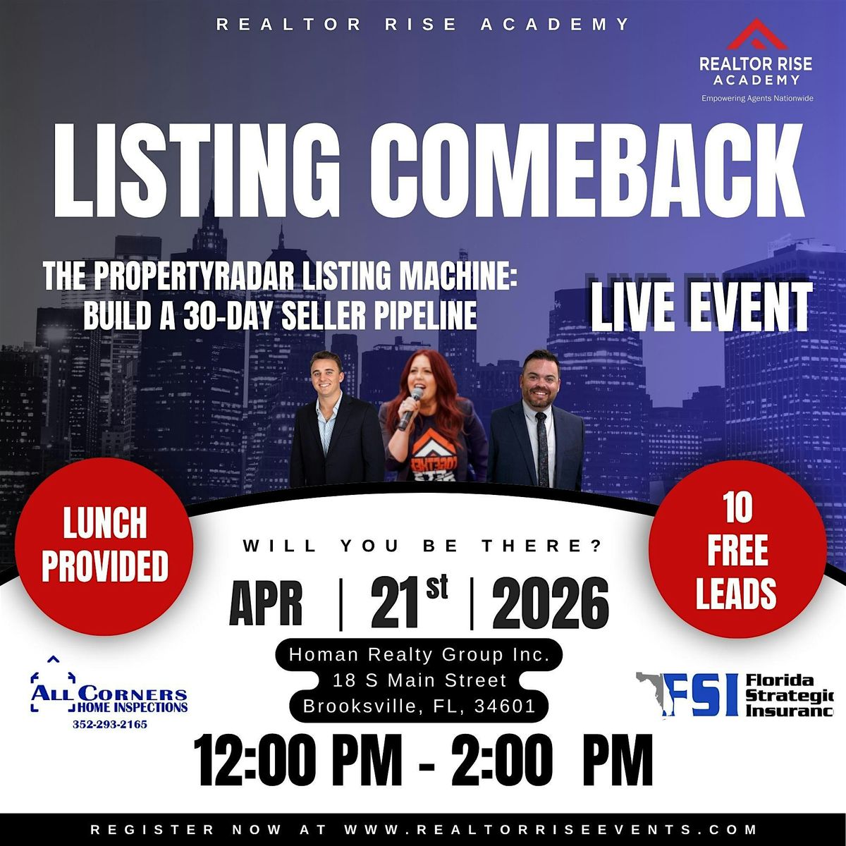 This live session will show you how to turn powerful data into a predictable pipeline of seller opportunities in just 30 days. 📊➡️🏡