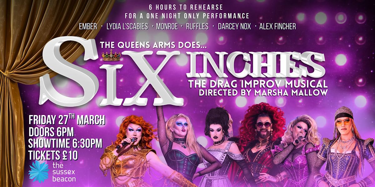 The Queens Arms Does..."SIX INCHES" The Drag Improv Musical directed by MARSHA MALLOW feautering six of cabaret favourites: EMBER, LYDIA L'SCABIES, MONROE, RUFFLES, DARCEY NOX and ALEX PARR.