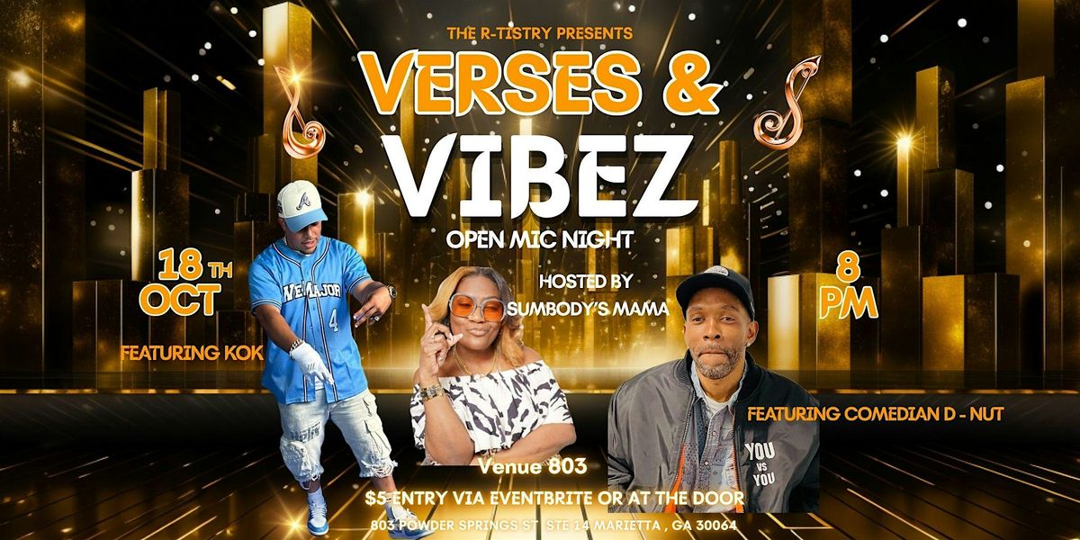 Welcome to The R-Tistry Presents: Verses and Vibez Open Mic Night! Join us for a night of creativity, expression, and good vibes at Venue 803. Whether you're a seasoned performer or a first-time poet, this is the perfect opportunity to share your talent with a supportive audience. Bring your best verses, songs, or stories and let your creativity shine on stage. Don't miss out on this exciting event where artistry meets community. See you there!
