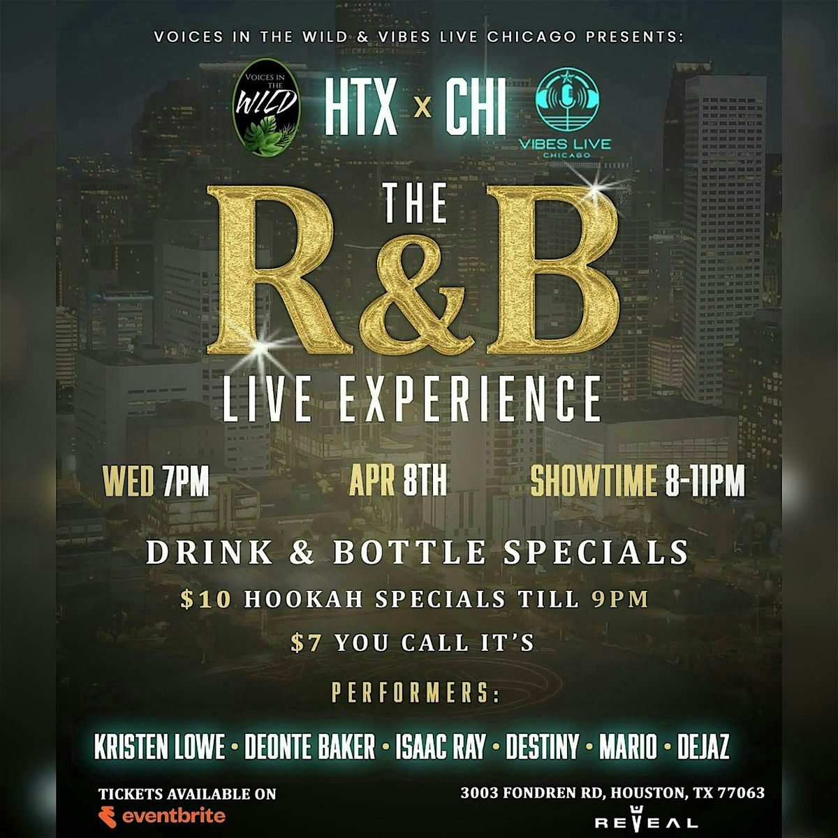 Houston meets Chicago for one unforgettable night of live R&B vocals, live bands, and electric energy. Grown. Sexy. Wild Vibes.About this Event