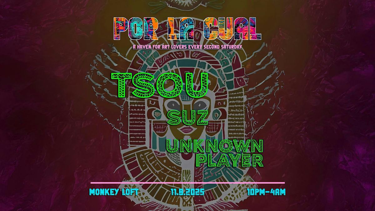 Por La Cual features a diverse range of headliners, local djs to enhance the journey throughout the night and a layer of decor to make Monkey Loft feel like, well, not Monkey Loft.