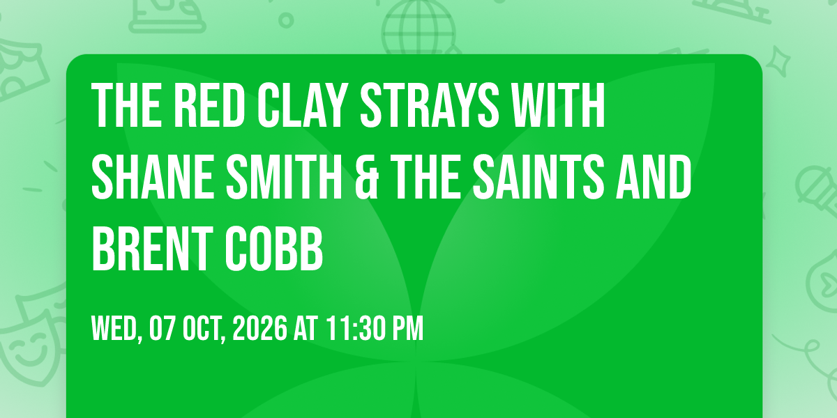 π Location: 32.7414, -97.3688β¨ Discover the extraordinary at The Red Clay Strays with Shane Smith & The Saints and Brent Cobb, where magic meets reality in ways you've never imagined! ποΈ Set in Dickies Arena nestled in bustling Fort Worth, TX, this event promises to be a landmark occasion. π Taking place on October 7th, 2026 at 11:30 PM, it's going to create an atmosphere where every moment becomes a cherished memory. π Immerse yourself in an experience crafted with attention to every detail, designed to surprise and delight at every turn. They have worked tirelessly to ensure this event exceeds all expectations, bringing together elements of entertainment, innovation, and pure joy. π Don't miss your chance to be part of this remarkable journey!