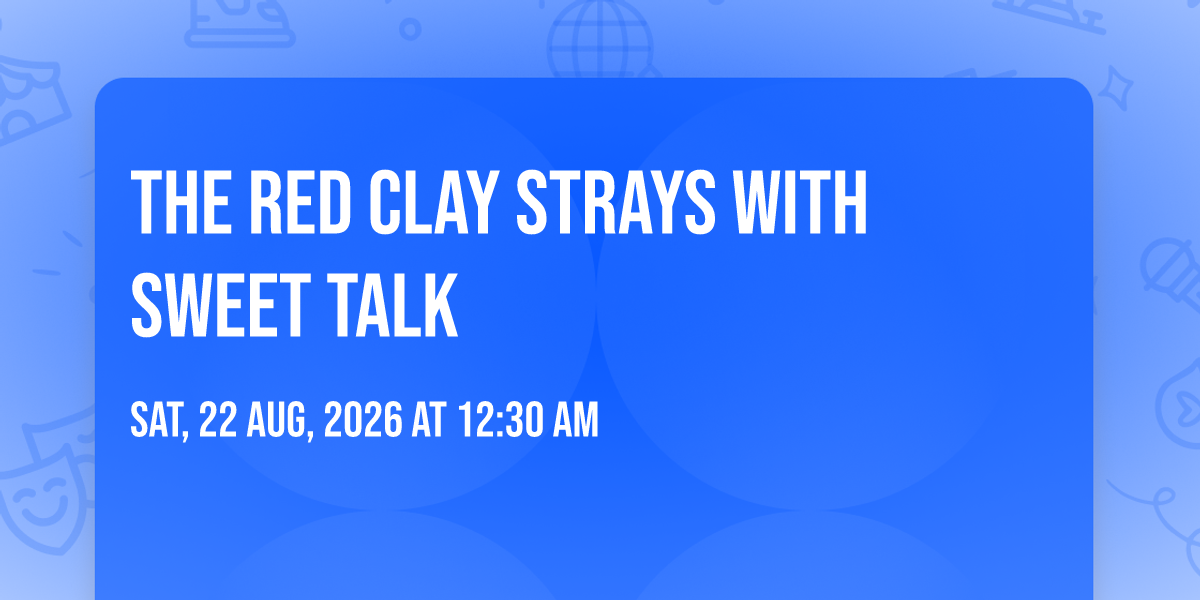 π Location: 45.665, -111.051π Prepare to be amazed at The Red Clay Strays with Sweet Talk, the most anticipated gathering of the season! π Set against the stunning backdrop of Brick Breeden Fieldhouse in vibrant Bozeman, MT, this event promises to redefine your expectations. π Mark your calendars for August 22nd, 2026 at 12:30 AM and get ready to immerse yourself in an atmosphere of wonder and excitement. β¨ From the moment you arrive, you'll be transported into a world where memories are made and stories come alive. They have crafted an experience that perfectly harmonizes entertainment, innovation, and community spirit. π Join us as we create moments that will be discussed for years!