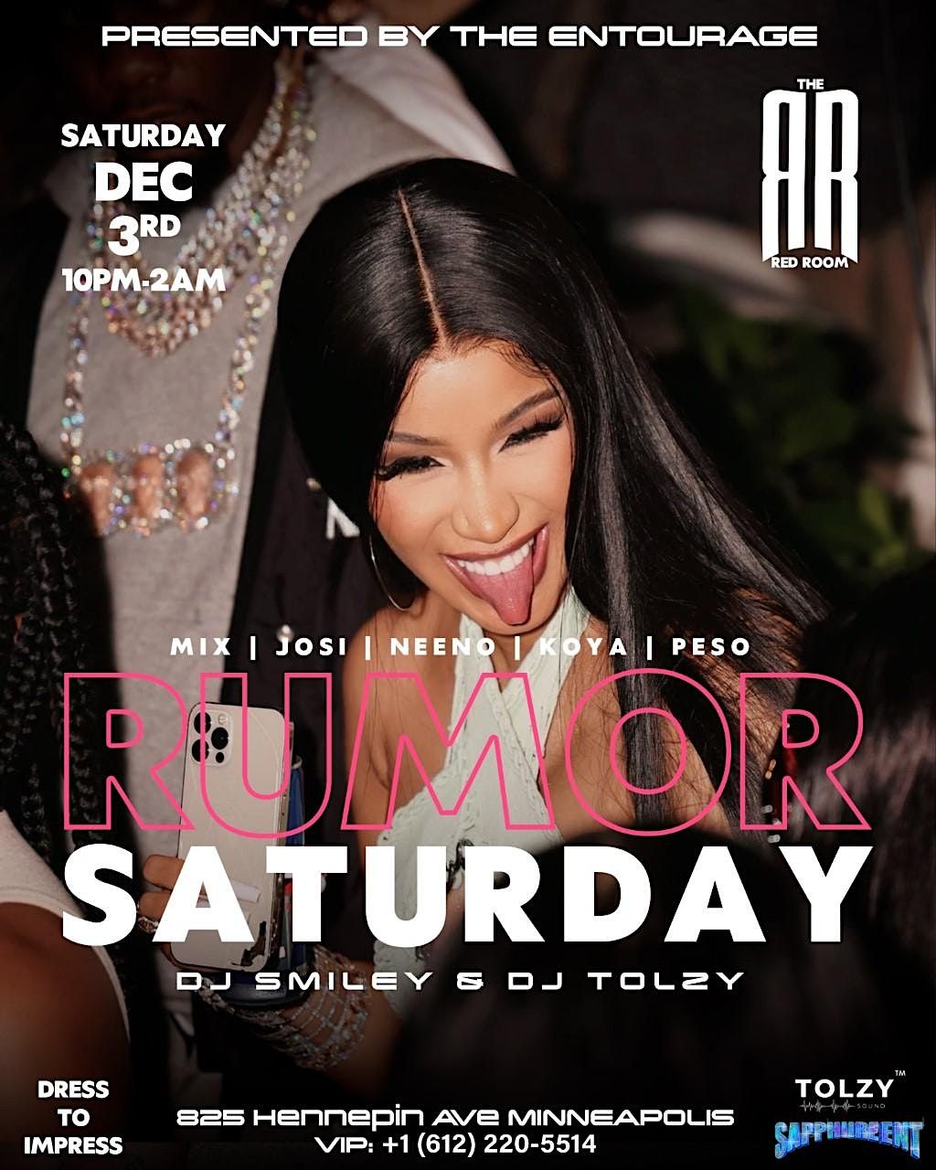 Far from your regular Saturday Night. RUMORS Saturday is the new talk of the town . Pull up and let your hair down ! YOU are guarenteed to have the time of your LIFE