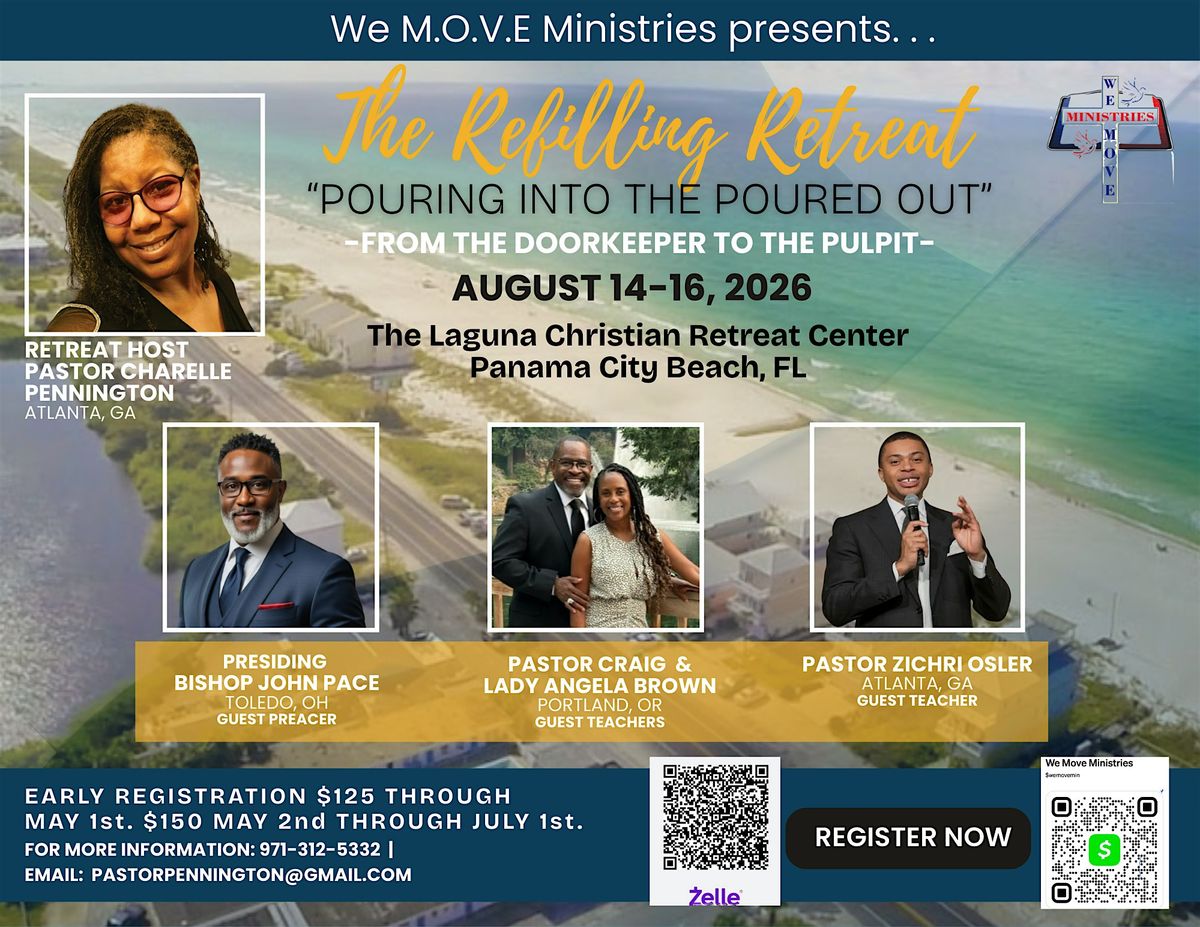 Join us in person for this amazing time of refilling, for all of you who have poured out into God's people. It is now time for God to pour back into you, by the beach of Panama City. Come and refresh your mind, body and spirit!