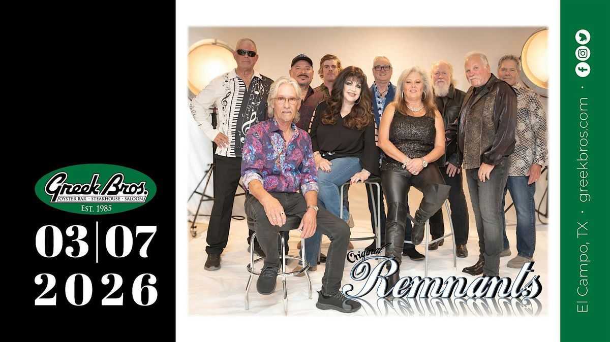 The Remnants are a group of talented and experienced musicians, with a dynamic and powerful horn section that will cove dance music from Country, Easy listening, Motown, Pop, and Rock. The vision of the band is to play that timeless music from the 60’s through the 90’s that will bring back memories and keep you on the dance floor all night long.