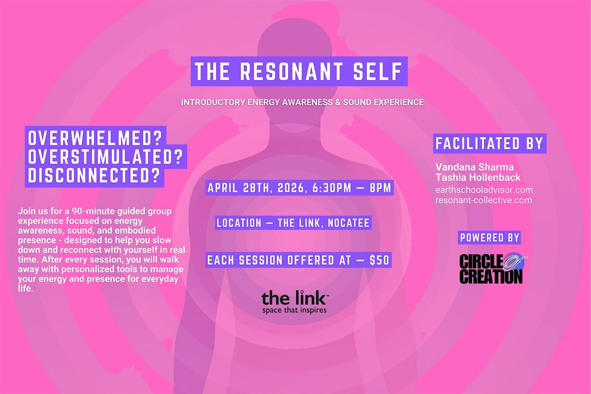 That’s why The Resonant Self was created — a 6-month monthly workshop series beginning this April, where participants learn how to ground, cleanse, protect, raise their vibration, and work with their body’s main energy centers (chakras), ultimately building a personal, usable toolkit for supporting themselves energetically in everyday life.