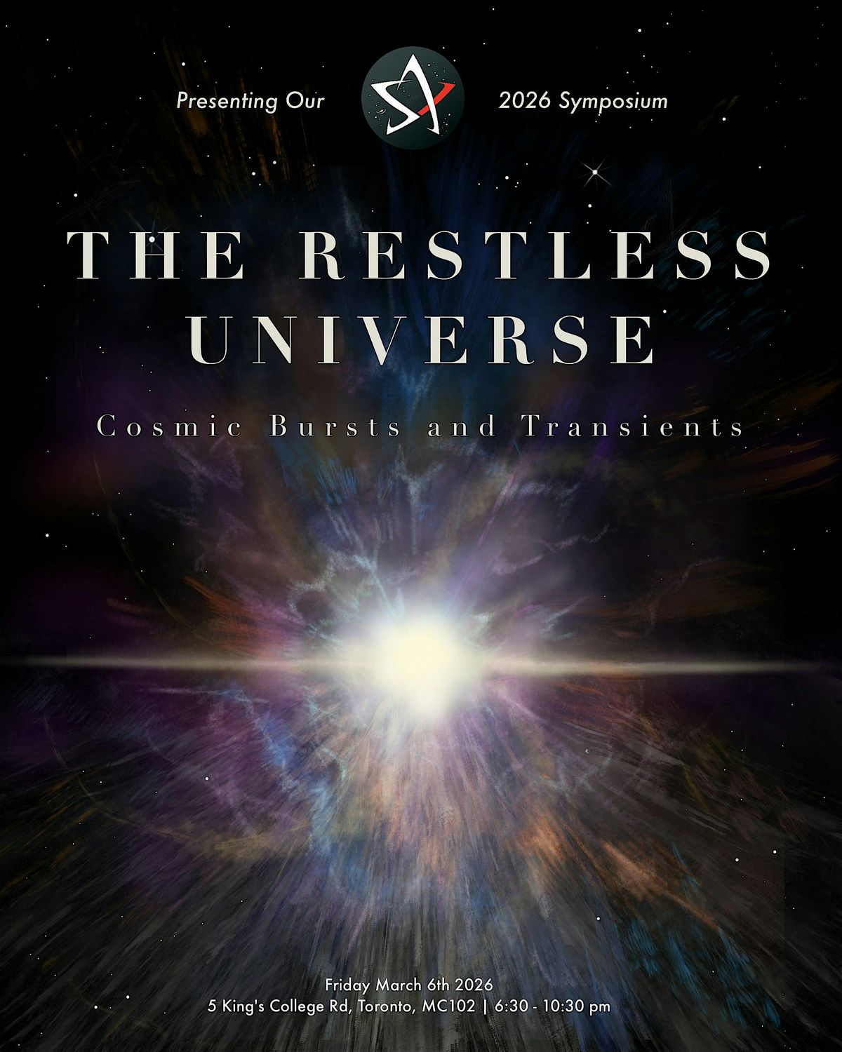 The universe is anything but quiet. Join us for The Restless Universe: Cosmic Bursts and Transients, an evening dedicated to an exploration of the energetic, yet short-lived events of our universe. Through engaging and accessible talks, featuring astrophysicists from NASA and leading universities, learn how fast radio bursts, gamma-ray bursts, and kilonovae reveal the universe at its most extreme and dynamic. As the largest single-day space-related event in Toronto, our annual symposia is sure to pique your curiosity (followed by a telescope giveaway as per ASX tradition)!