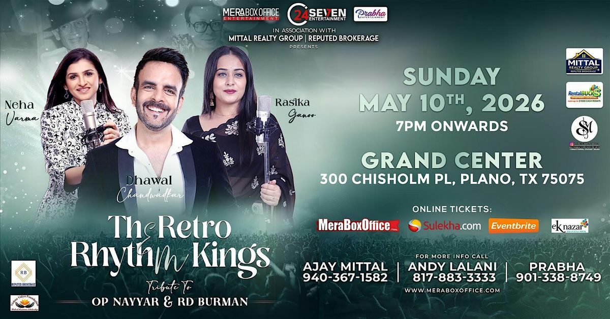 Come join us at Grand Center for a night of nostalgic melodies on May 10, 2026 at 7:30 PM (Central Time). A Grand Musical Tribute ConcertCelebrating the timeless music of O.P. Nayyar and R.D. BurmanGet ready to relive the golden era of Bollywood music!This special tribute concert brings together the unforgettable rhythms and melodies of two legendary Indian music composers — O.P. Nayyar, the original “Rhythm King”, and R.D. Burman, the iconic Pancham Da