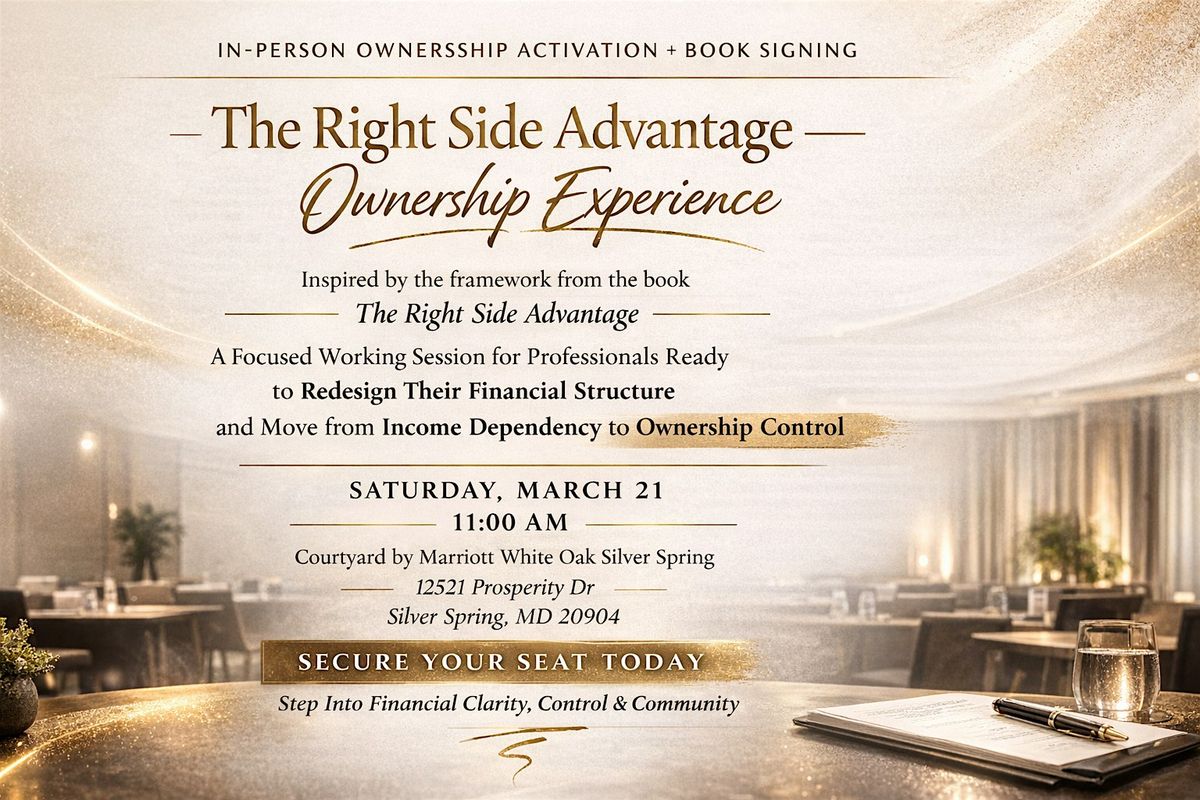 Angela Christian — Financial Strategist and Author of The Right Side Advantage — invites you into a structured, in-person Ownership Experience designed for professionals who are ready to redesign their financial structure.