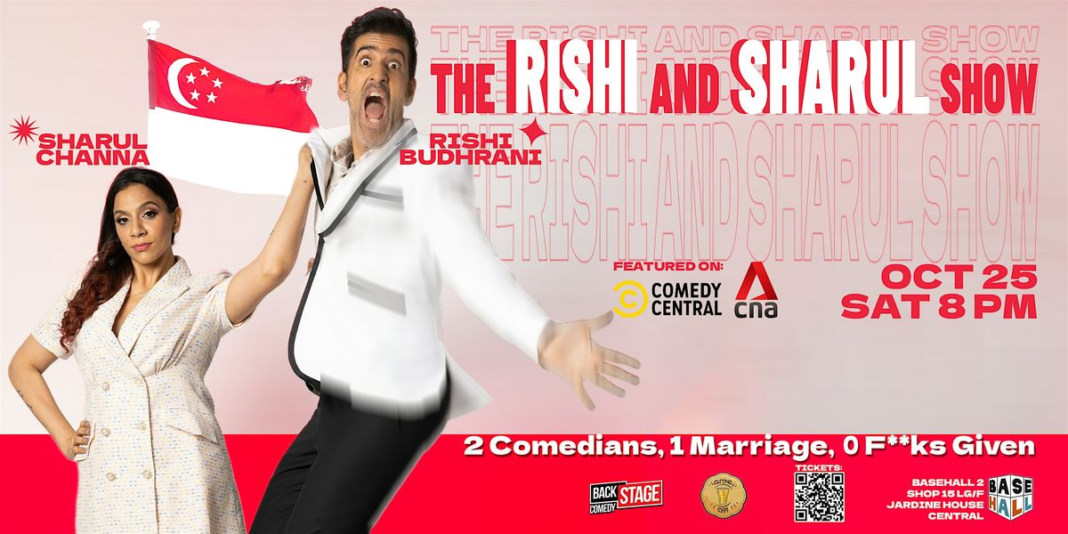 For 1 night only, 2 of Singapore’s funniest superstars, and real-life married couple, Sharul Channa (“razor sharp wit, balls of steel”) and Rishi Budhrani (“hilarious, teasing social commentary”) come together for a no-holds-barred evening of stand-up comedy. The wildly popular Rishi and Sharul Show promises a night of hard-hitting laughs, tackling themes of family, relationships, dating, current aIairs, politics, and of course - MARRIAGE. You may have seen them together on Comedy Central Asia, as co-hosts of CNA docu-series Rishi and Sharul Try, and on-screen animated couple Sammy and Priya from the Netflix animated series, Downstairs. But make no mistake, they are at their best in front of a LIVE comedy audience. Having performed sold-out venues together in China, India, The Philippines and South Africa; that Indian lady doing jokes in a saree on your TikTok feed, and that comedian from the National Day Parade, are ready to take things to the next level at The Esplanade Concert Hall, Singapore.