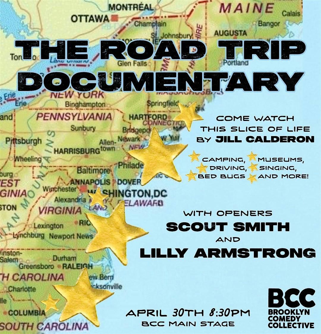 Think of the calm of camping in a Georgia forest, then think of the knowledge of a DC museum, then think again of camping in Maine during quiet hours when you get the sillies. These experiences and more have been captured in THE Road Trip Documentary. Join Jill, Wyatt, Recebba, and Sage in this slice of their life. With standup openers Scout Smith and Lily Armstrong.