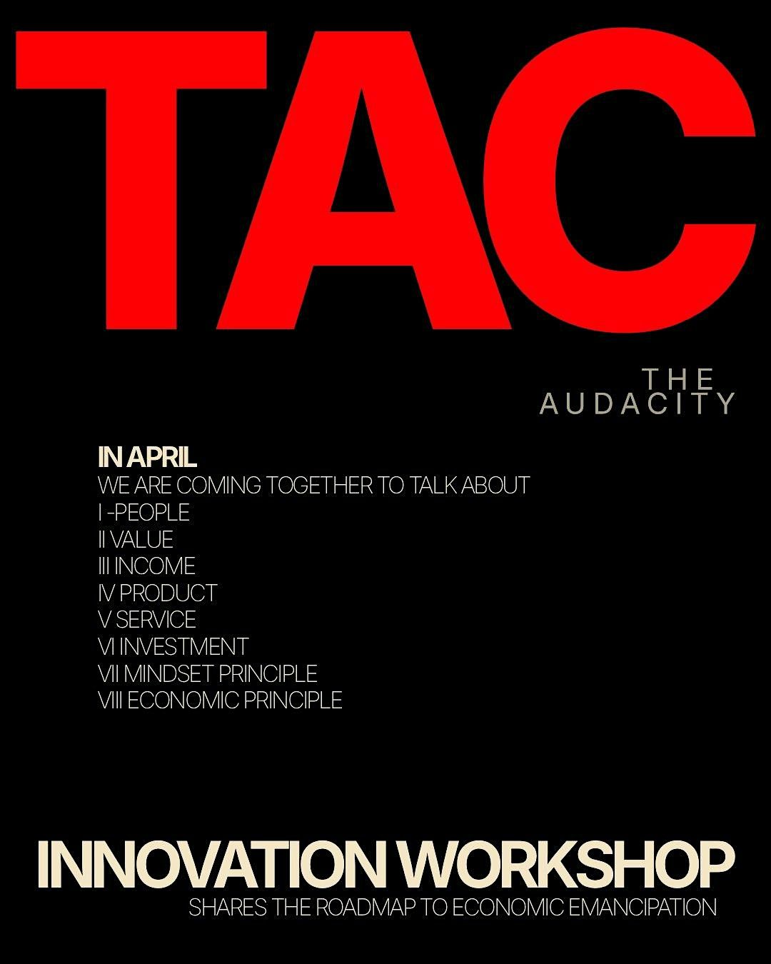 The Audacity Innovation Workshop is a high-impact, interactive experience designed to equip you with the mindset, tools, and network needed to turn ideas into income and purpose into action.