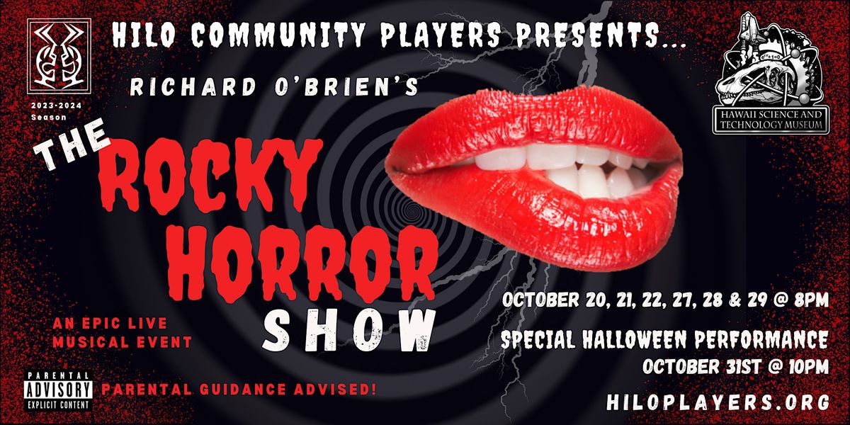Hilo Community Players presents THE ROCKY HORROR SHOW - LIVE! at the Hawai'i Science and Technology Museum in downtown Hilo. Performances take place on Fridays, Saturdays and Sundays from October 20-29 at 8pm, with a special 10pm showing on Hawalloween, October 31.