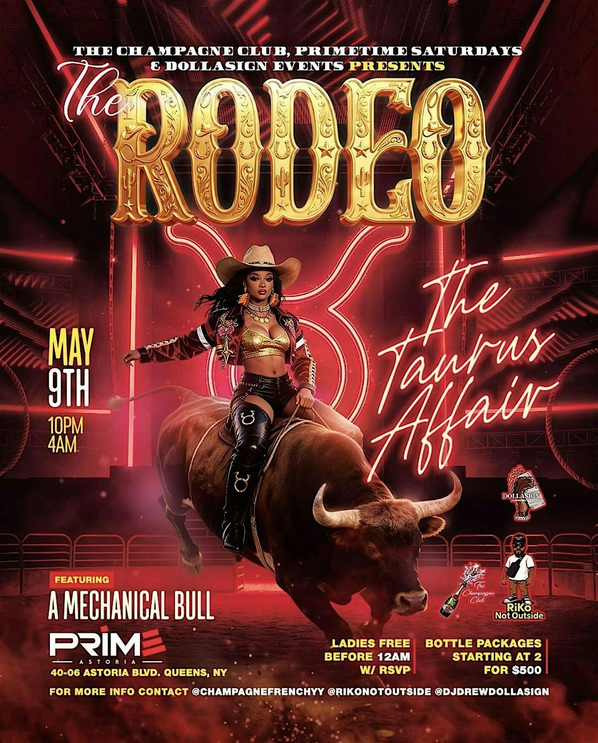 Get ready for an epic in-person experience that brings all the excitement and thrills you crave. THE RODEO is where action meets fun, and THE TAURUS AFFAIR adds a twist you won't forget. Featuring a Mechanical Bull. Grab your friends, enjoy the vibe, and dive into a day filled with energy and unforgettable moments. See you there!