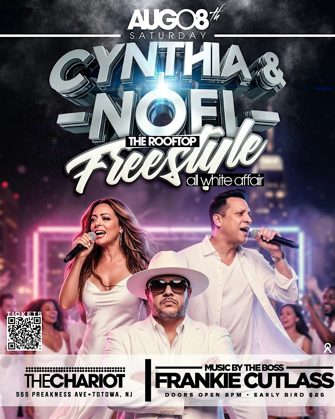 Joe Jaxson & CMG Presents a night of Freestyle Music on the Rooftop, Sat Aug 8th, at 8pm. Live On Stage, Cynthia, Noel & Frankie Cutlass.