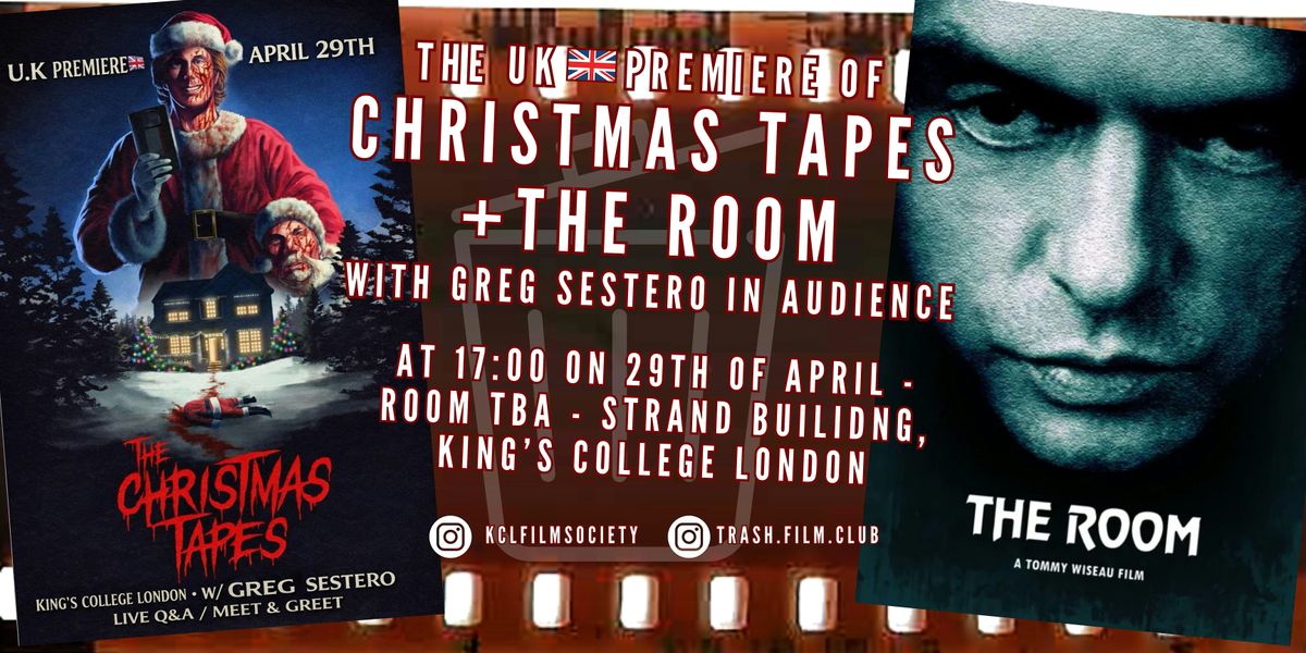 Greg Sestero is returning to King's College London with the absolute cult classic, The Room! Plus, his new found footage horror film, Christmas Tapes! Prepare your spoons and footballs for an absolutly mad interactve screening, which will be followed up by a Q&A with Greg! Don't miss out on this epic, wild, weird, and wonderful double feature experience!