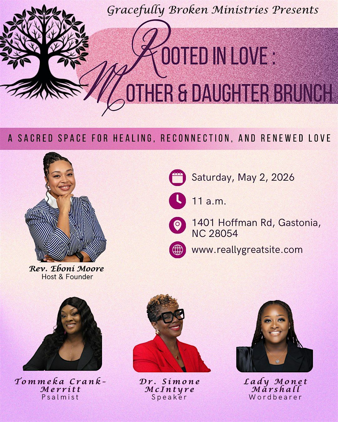 The vision for this womenβs brunch is to create a safe, grace-filled space where mothers and adult daughters can reconnect, heal past hurts, and rediscover the beauty of their relationship.