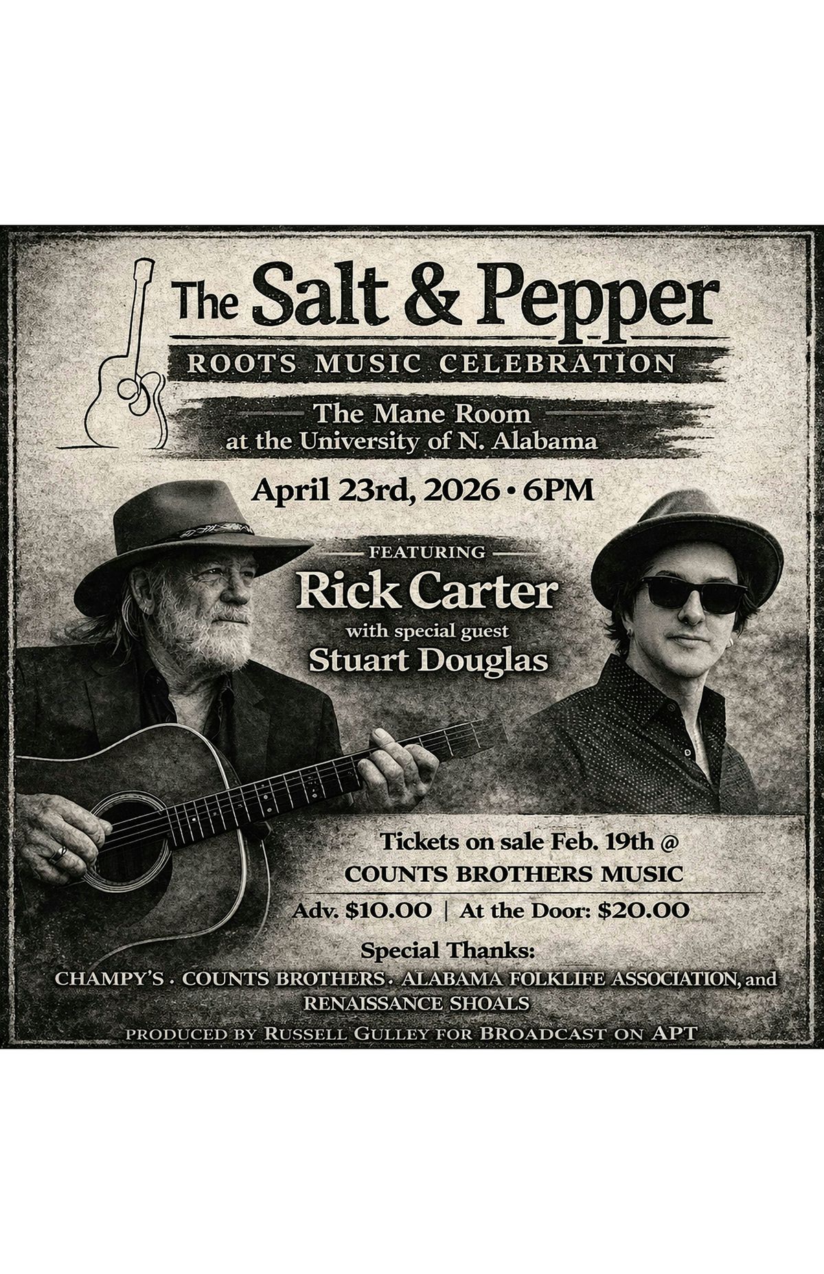 FLORENCE, Ala. — The Salt and Pepper Roots Music Celebration returns on Thursday, April 23, 2026 at 6:00 p.m. at the Mane Room at the University of North Alabama in Florence, Alabama, for an evening honoring Alabama’s enduring roots music legacy.