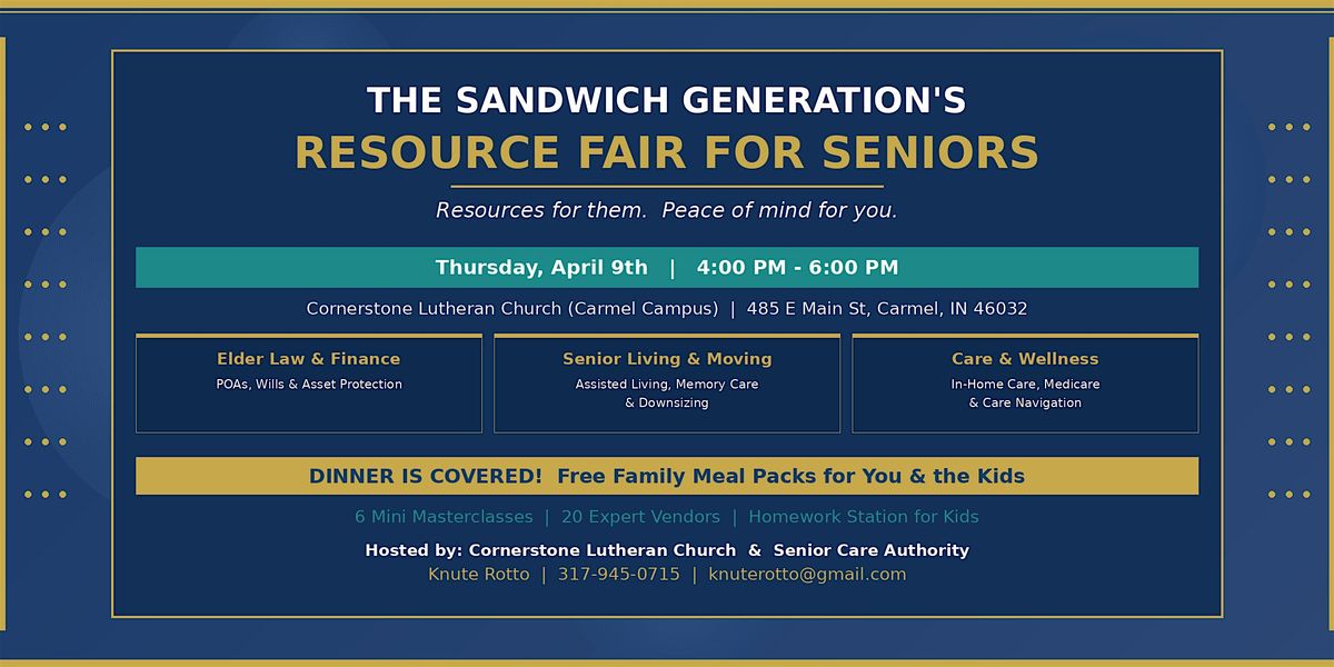 Join us in person for The Sandwich Generation's Resource Fair for Seniors! DINNER IS COVERED! π